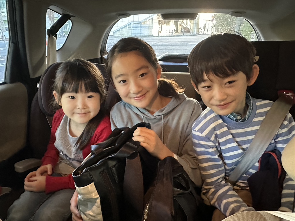 (Children hold the scarf in one hand)
