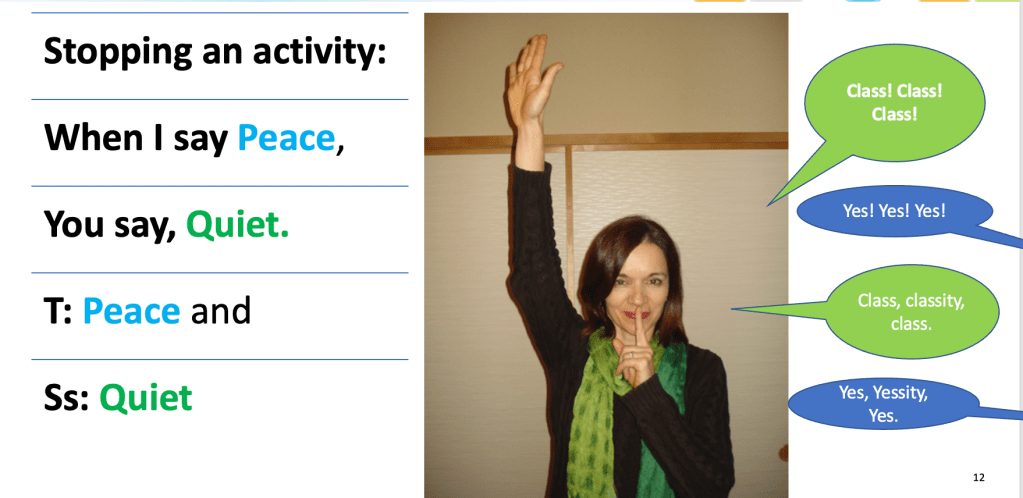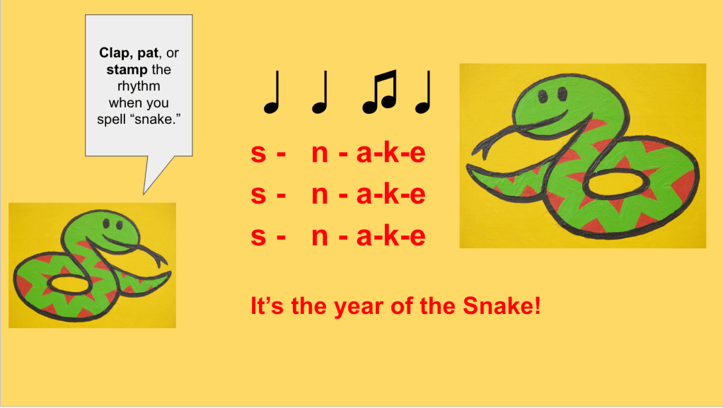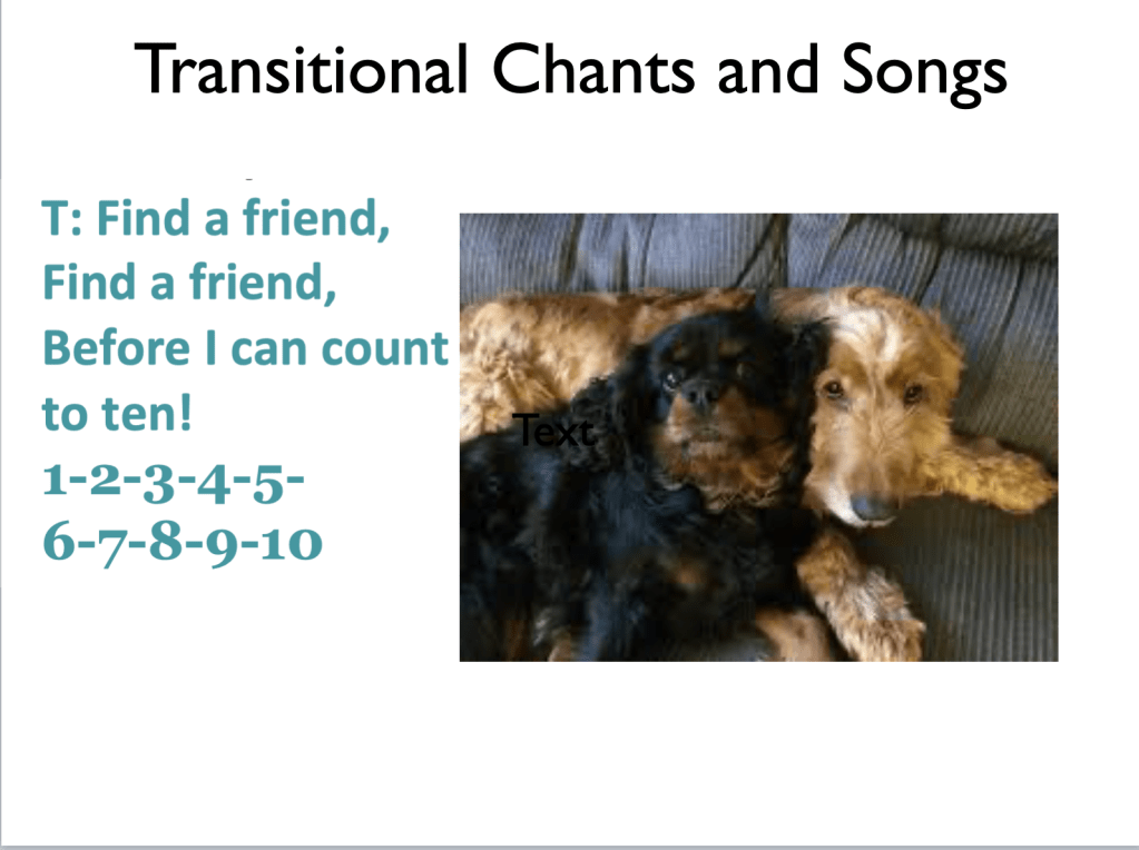 What do you have readily available in your classroom? A slide whistle is one of the most interesting sounds I have in my classroom. If you have a big group of students, it quickly gets their attention. Don’t have a slide whistle? How about a shaker, a tambourine, or a kazoo?