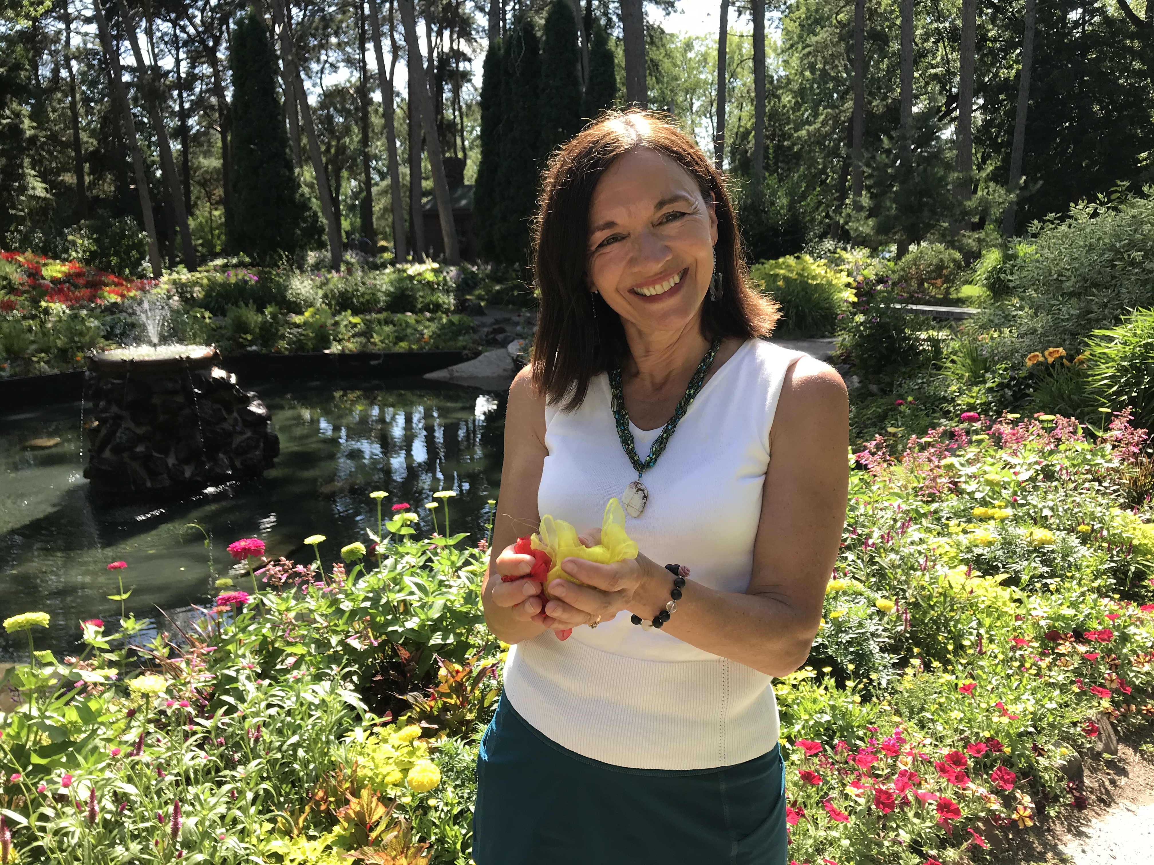 (Sit and toss scarves or stand and dance.)