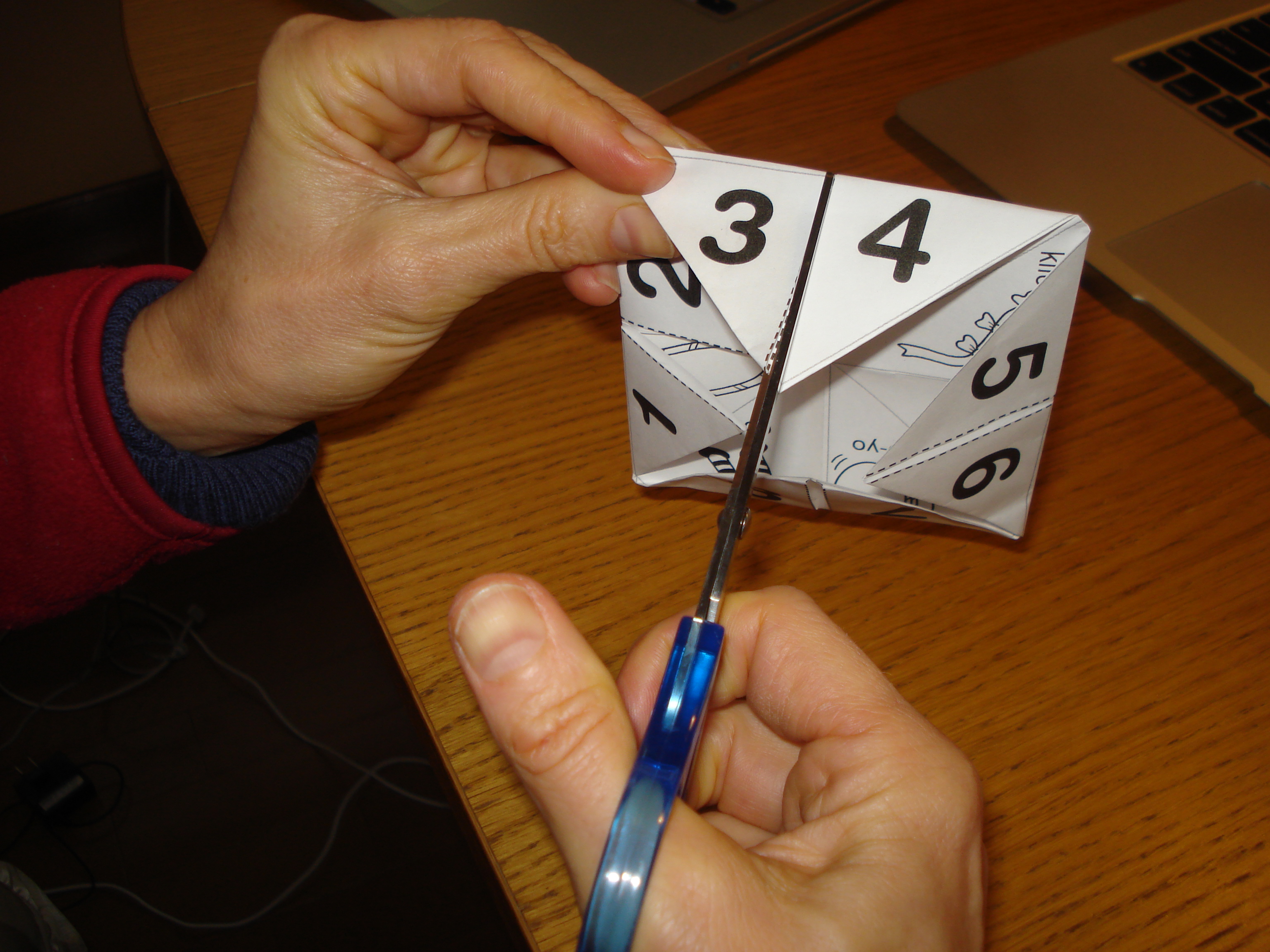 A:  Shows the inside of the fortune teller, and asks, “Which number?”
