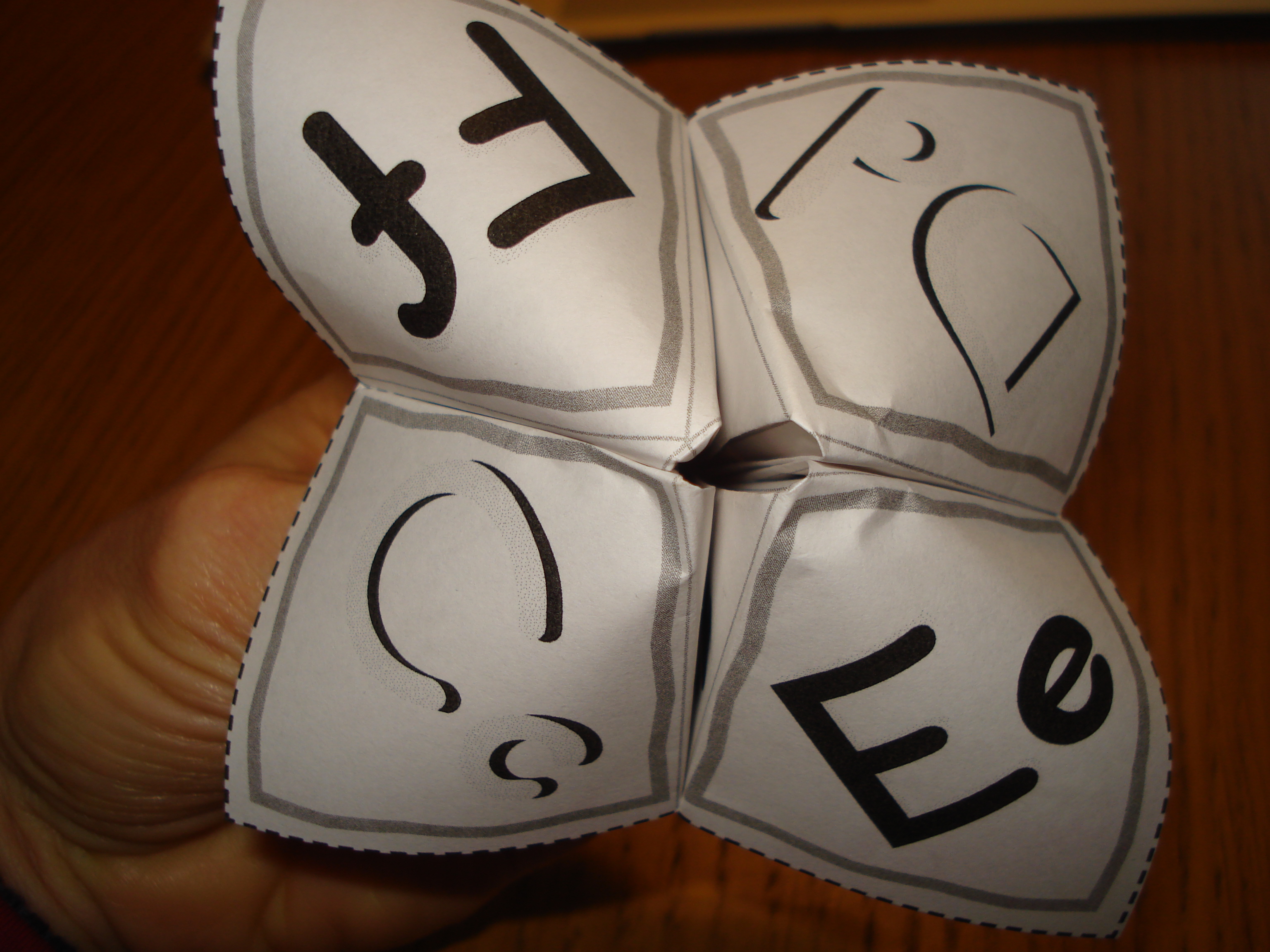 f.  Bring the points together.  Then open and close the fortune teller.