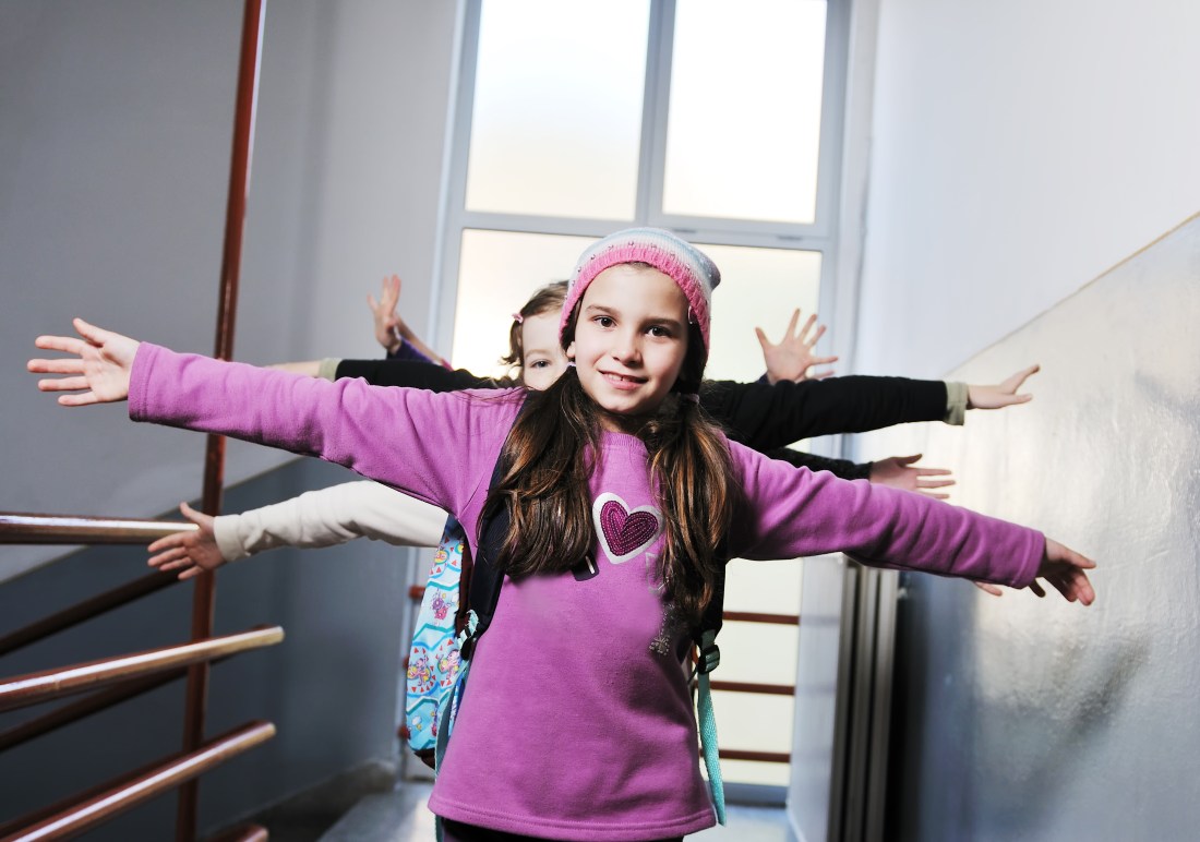 Children also explore how to make the shape of a heart with their hands, their arms, or with a partner.